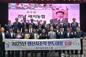 한국시사경제 전남취재본부 | 전라남도 나주시가 지역 대표 특산물 세지멜론의 전국적 경쟁력을 다시 한번 입증했다. 나주시(시장 윤병태)는 세지농협 멜론공선출하회가 농협중앙회 ‘2025 생산자조직 연도대상’에서 우수상을 받으며 공선 조직 기반의 고품질 생산 시스템과 지역 농가의 역량을 공식적으로 인정받았다고 5일 밝혔다. 세지농협(조합장 이은상)에 따르면 멜론공선출하회가 ‘2025년도 생산자조직 연도대상’ 평가에서 우수 생산자조직으로 선정됐다. ‘생산자조직 연도대상’은 농협경제지주가 전국 공선출하회를 대상으로 생산, 선별, 출하, 운영 등 전반의 활동과 품질관리 실적을 종합 평가해 우수 조직을 선정하는 제도다. 산지 조직 활성화와 농업 공동체 발전을 도모하는 대표적 평가로 꼽힌다. 세지농협 멜론공선출하회는 1996년 결성된 이후 현재 69명의 회원이 활동하고 있으며 나주 세지멜론은 약 66ha 재배면적에서 연간 3200톤이 생산된다. 연평균 기온 15도, 풍부한 일조량 등 나주시 특유의 자연조건은 멜론 재배에 최적화돼 있으며 특히 풍부한 과즙과 달콤한 향, 13브릭스 이상을 유